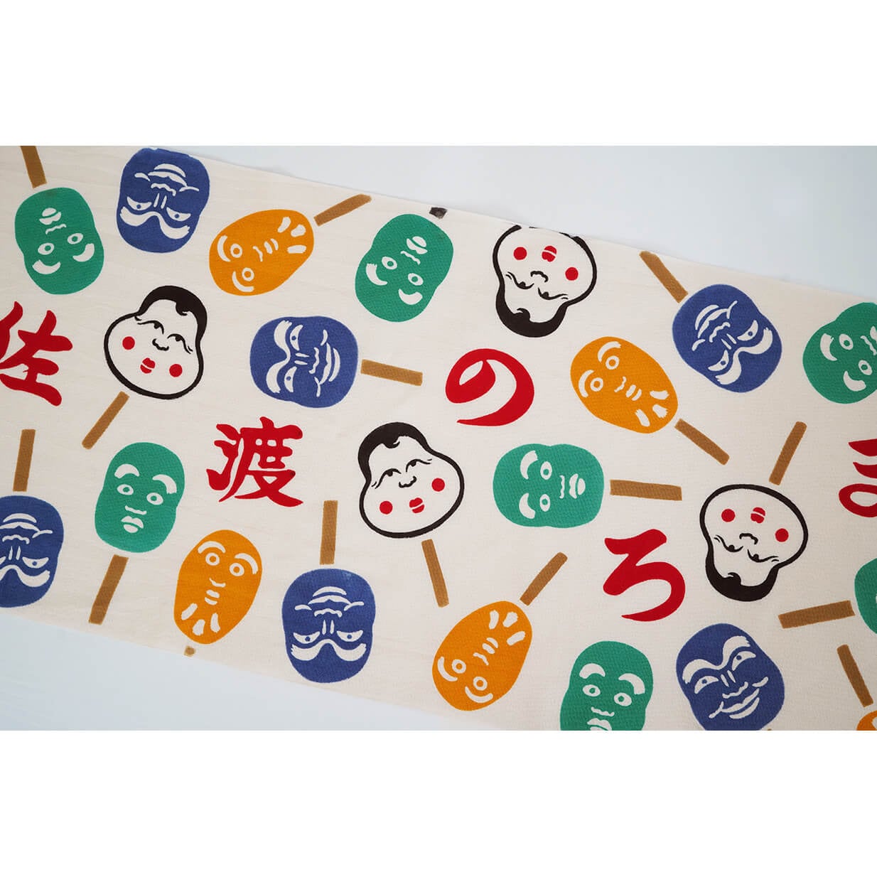 ちょっとこわいけれど滑稽な表情の人形に強く惹かれ、いつか手ぬぐいにしたいと思っていたのでした。